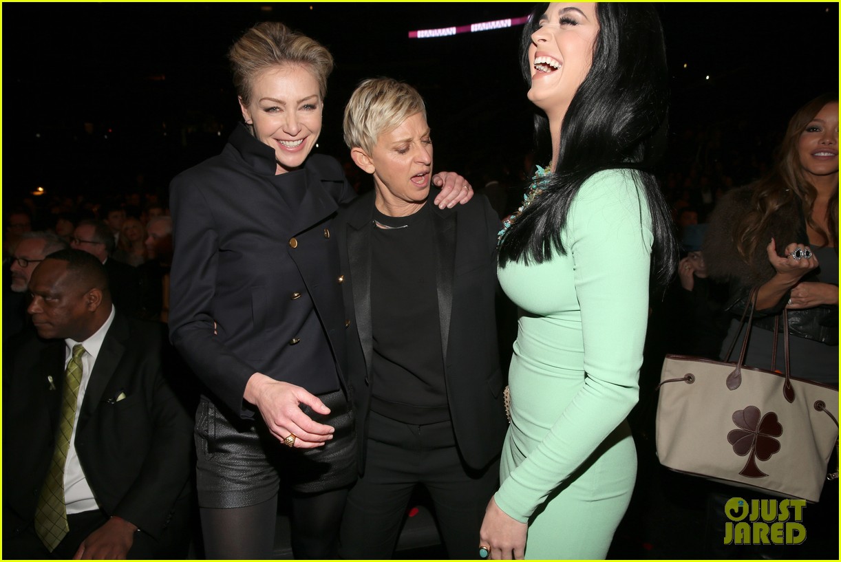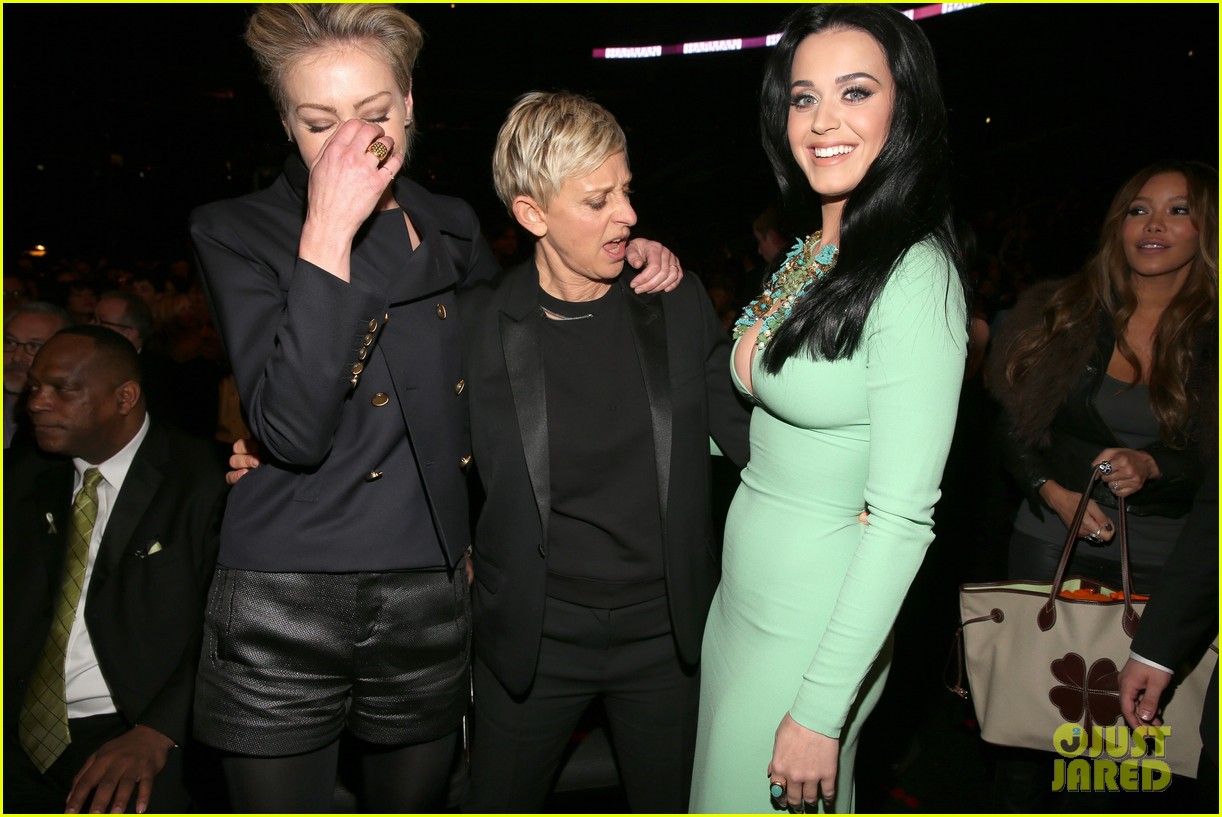 Pues bien, resulta que Katy Perry fue a la gala de los Grammys, como es natural, mientras que Ellen fue con su mujer Portia. Lo que pasa es que en su camino se cruzó una espléndida Katy Perry con un escote que sería imposible no verlo. A Ellen la pillaron los fotógrafos admirando en primera plana el escote de Katy Perry mientras exclamaba algo así como, Oh, my god!!